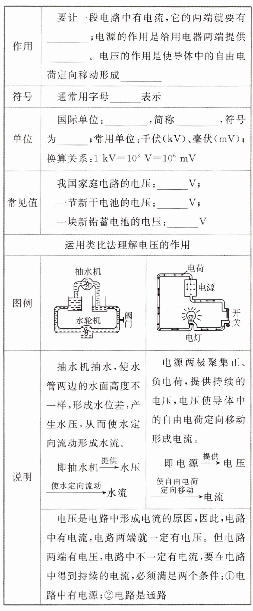 C. 电压通常用字母U表示,国际单位是伏特,符号是V
