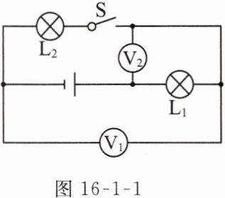 B. 开关闭合后,电压表V₁和V₂分别测的是灯泡L₂和L₁两端的电压