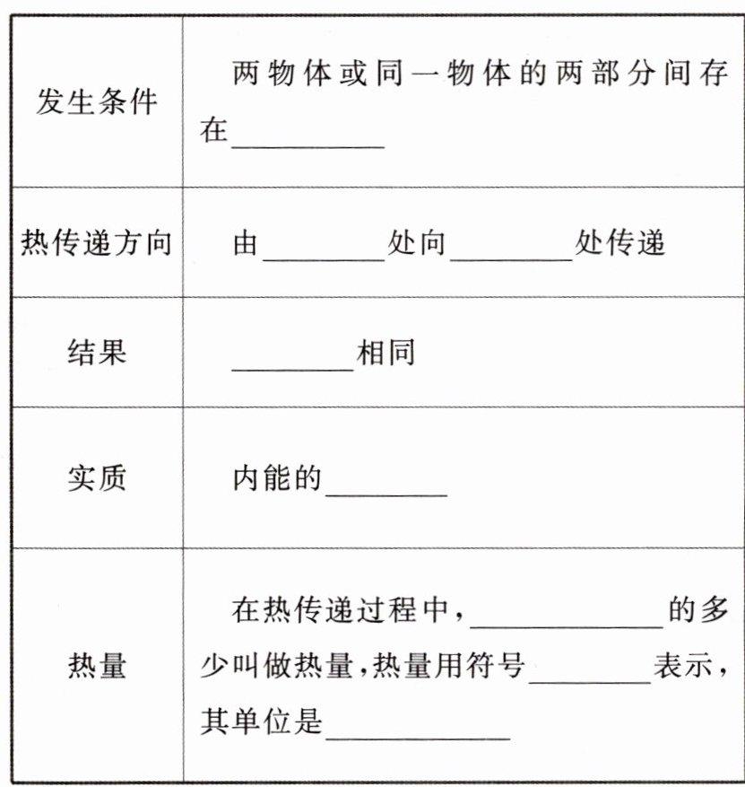 3. 内能大小的影响因素:温度、质量、体积、物质种类、状态。