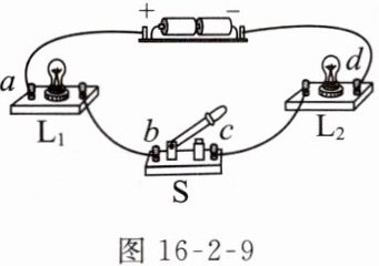 例4 如图16-2-9所示为小媛连接的电路。她检查导线连接无误后,闭合开关S,发现两灯均不发光,于是她用一个电压表分别连接在a与b、b与c、c与d间,电压表示数均为零,再用电压表连接b、d两点时,电压表有示数且接近电源电压,由此判定电路故障可能是 ( )