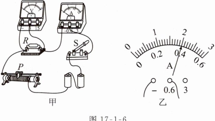 例2 小芳和同学们一起做“探究电流与电阻的关系”实验,她们准备了电压为3V的电源,规格为“30Ω 1A”的滑动变阻器,阻值分别为5Ω、10Ω、15Ω、20Ω的四个定值电阻,电流表、电压表、开关各一个,导线若干。她们利用这些器材设计了如图17-1-6甲所示的电路。实验中控制定值电阻两端电压为2V不变。请帮助小芳和同学们完成以下问题: