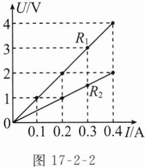 例3 (2023沈阳和平区校级期末)如图17 - 2 - 2所示 是电阻$R_1$、$R_2$的$U - I$关系图象,下列说法正确的是 ( )