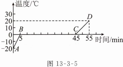 例7 小红在实验室利用电加热器加热,完成了冰的熔化实验,并描绘出冰熔化时温度随加热时间变化的关系图线(如图13-3-5所示)。实验时,冰的质量为0.5kg,相同时间内水和冰吸收的热量相同,水的比热容为4.2×10³ J/(kg·℃)。求: