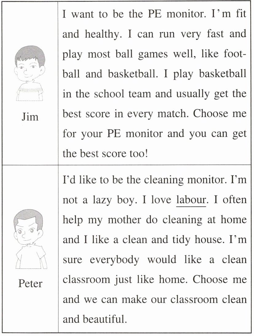 It's the start of the new term and we're choosing our new monitors. These are some of their speeches(发言).