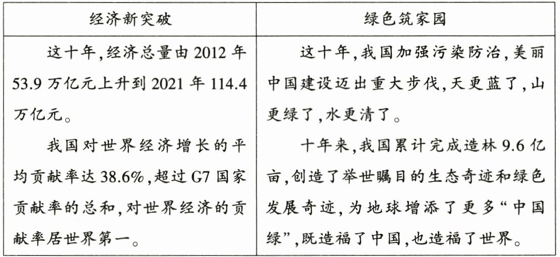 党的十八大以来的十年,虽然时间短暂,却发生了许多巨变。中学生小杰以“走近十年,走进发展”为学习主题,收集了两组资料: