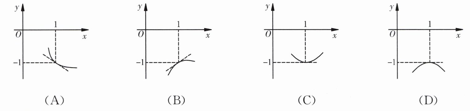 1. 已知函数$y = f(x)$,若$f(1)=f'(1)=-1$,则函数$f(x)$的图象在点$(1,f(1))$附近的大致形状为( ).