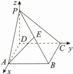 15.(数学运算)如图所示,$PD$垂直于正方形$ABCD$所在平面,$AB = 2$,$E$为$PB$的中点,$\cos\langle\overrightarrow{DP},\overrightarrow{AE}\rangle=\frac{\sqrt{3}}{3}$,若以$DA$,$DC$,$DP$所在直线分别为$x$轴、$y$轴、$z$轴建立空间直角坐标系,则点$E$的坐标为 ( )
