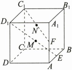 15.(直观想象)如图,已知点$E$,$F$分别是正方体$ABCD - A_1B_1C_1D_1$的棱$AB$,$AA_1$的中点,点$M$,$N$分别是线段$D_1E$,$C_1F$上的点,则与平面$ABCD$垂直的直线$MN$有_______条.