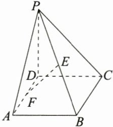 13. 如图所示,四棱锥$P - ABCD$的底面$ABCD$是边长为1的正方形,$PD\perp$底面$ABCD$,且$PD = 1$,若点$E$,$F$分别为$PB$,$AD$的中点,则直线$EF$与平面$PBC$的位置关系是_______.