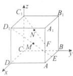 mDE(0<m<1),则(x−2,y,x−2)=m(−1,2,−2),可得x=2−m,y=2m,x=2−2m,所以M(2−m,2m,2−2m),同理,设CN=nCF(0≤n≤1),可得N(2n,2n,2−n),所以MN=(m+2n−2,2n−2m,2m− 因为 MN⊥平面 ABCD,所以{MMNN.,C$\frac{n).}{CD}$B==00,,又CD=(2,0,0),CB=(0,2,0),所以{m2n+−22nm−=20=,0,解得1m1==$\frac{2}{3}$$\frac{2}{3}$,即满足条件的直线MN