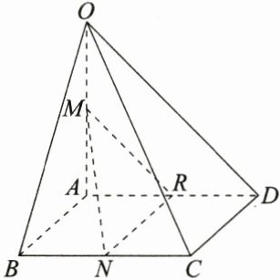 14. 如图,在四棱锥$O - ABCD$中,底面ABCD是边长为2的正方形,OA⊥底面ABCD,OA = 2,M,N,R分别是OA,BC,AD的中点. 求: