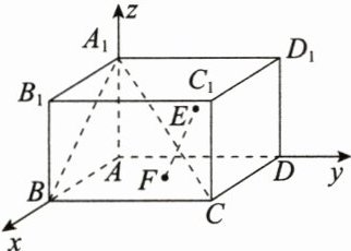 12.(多选)如图,在长方体$ABCD - A_1B_1C_1D_1$中,$AA_1$ = 1,AB = AD = $\sqrt{3}$,E是侧面$AA_1D_1D$的中心,F是底面ABCD的中心,以A为坐标原点,AB,AD,$AA_1$所在直线分别为x,y,z轴建立空间直角坐标系,则( )