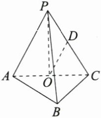 解析 以O为原点,OA,OB,OP所在直线分别为x轴,y轴,z轴建立空间直角坐标系,如图,设$AB = a$,则$OA = OC=\frac{\sqrt{2}}{2}a$,$OP=\frac{\sqrt{14}}{2}a$,则$O(0,0,0)$,