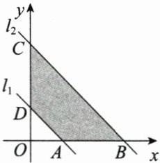 9. 如图所示,已知直线$l_1$:x + y - 1 = 0,现将直线$l_1$向上平移到直线$l_2$的位置,若$l_2$,$l_1$和坐标轴围成的梯形面积为4,求$l_2$的方程.