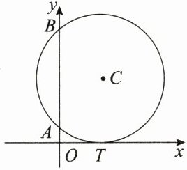 10. 如图,已知圆$C$与$x$轴相切于点$T(1,0)$,与$y$轴正半轴交于$A$,$B$两点($B$在$A$的上方),且$\vert AB\vert = 2$.