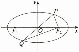 因为$\vert OP\vert=\vert OQ\vert$,$\vert OF_{1}\vert=\vert OF_{2}\vert$,所以四边形$PF_{1}QF_{2}$是平行四边形,所以$\vert PF_{1}\vert=\vert QF_{2}\vert$,$\vert PF_{2}\vert=\vert QF_{1}\vert$。