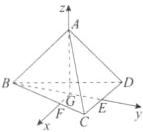 10.解 过点A作AG垂直平面BCD于点G,易知G为△BCD的中心,过点G作GF//CD,延长BG交CD于点E,则E为CD的中点。以G为坐标原点,GF,GE,GA所在直线分别为x轴,y轴,z轴,建立如图所示的空间直角坐标系G - xyz。