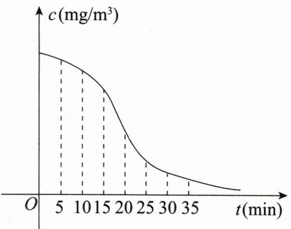 3. 降低室内微生物密度的有效方法是定时给室内注入新鲜空气,即开窗通风换气. 在某室内,空气中微生物密度$(c)$随开窗通风换气时间$(t)$的关系如图所示,则下列时间段内,空气中微生物密度变化的平均速度最快的是( )