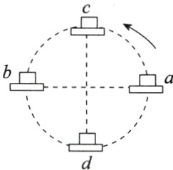 4. 如图所示,在粗糙水平木板上放一个物块,使木板和物块一起在竖直平面内沿逆时针方向做匀速圆周运动,ab为水平直径,cd为竖直直径,在运动中木板始终保持水平,物块相对于木板始终静止,则( )