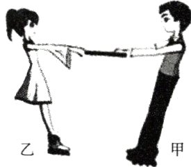 AD 甲、乙两人做圆周运动的角速度相同,故选项A正确;两人靠拉力提供向心力,故甲、乙两人的向心力大小相等,由$F = m\omega^{2}r$可知运动半径之比为$r_{甲}:r_{乙}=m_{乙}:m_{甲}=2:3$,故选项D正确,C错误;由线速度$v=\omega r$可知甲、乙两人线速度大小之比为$v_{甲}:v_{乙}=r_{甲}:r_{乙}=2:3$,故选项B错误。