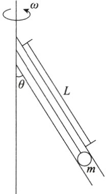 BD 当玻璃管绕竖直轴以角速度$\omega$匀速转动时,小球与玻璃管间恰无压力,此时对小球受力分析可知,向心力$F = mg\tan\theta = m\omega^{2}r = m\omega^{2}L\sin\theta$,增加绳长之后,此时小球需要的向心力增大,小球有离心的趋势,小球将垂直于右侧管壁挤压管壁,玻璃管会给小球一个斜向下的压力,故A错误;增加绳长之后,小球做圆周运动的半径增大,要保持小球与管壁之间无压力,则小球所需向心力大小不变,半径增大,则需要减小角速度$\omega$,故B正确;增加小球质量,此时$mg\tan\theta = m\omega^{2}L\sin\theta$,质量可被约去,小球做圆周运动的半径不变,小球对玻璃管无压力,故玻璃管对小球也无压力,故C错误;仅增加角速度,小球需要的向心力增大,小球有离心的趋势,小球将垂直于右侧管壁挤压管壁,玻璃管会给小球一个斜向下的压力,故D正确。