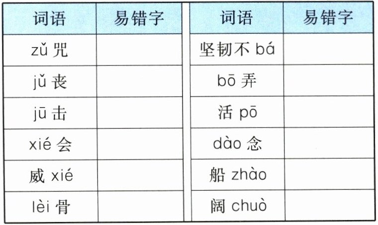 2. 诅 沮 狙 协 胁 肋 拔 拨 泼 悼 棹 绰