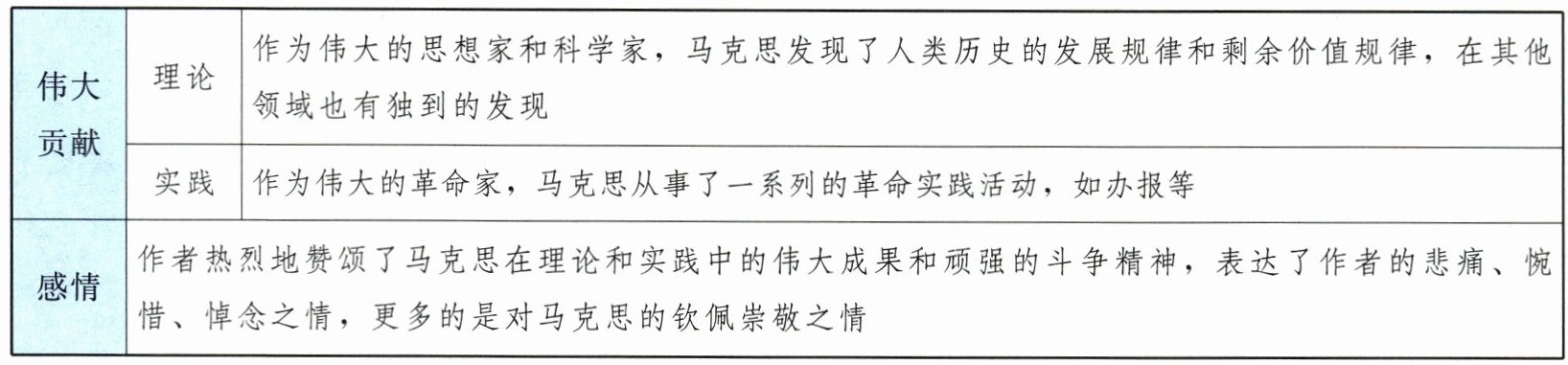 1. 课文从哪几个方面介绍了马克思的伟大贡献?表达了作者怎样的感情?