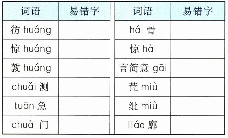2. 徨 惶 煌 揣 湍 踹 骸 骇 赅 谬 缪 寥