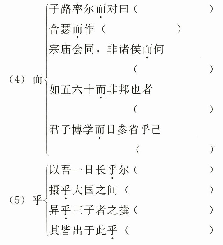 (5)浴乎沂,风乎舞雩( )