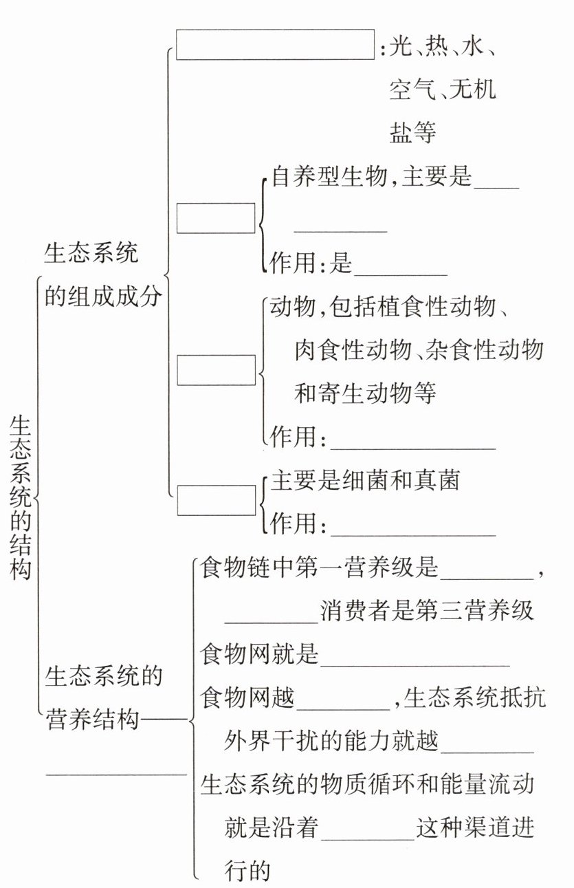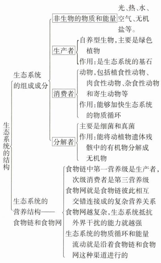 (1) 生态系统的结构只包括食物链和食物网。( )
