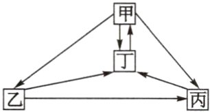 10. 下图表示生态系统四种组成成分之间的关系,其中甲、乙、丙依次为 ( )
