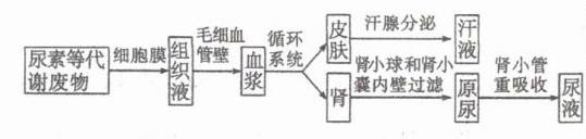 2. 用文字和箭头概述尿素等代谢废物排出体外的过程。