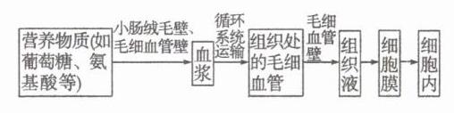1. 用文字和箭头概述营养物质(如葡萄糖、氨基酸等)进入组织细胞的过程。