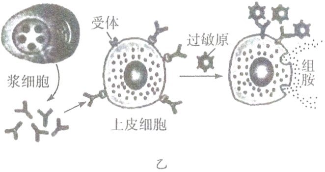 (3)特异性免疫 正常人体内抗体主要分布于血清中(也分布于组织液及外分泌液),图乙中(过敏反应)的抗体吸附在皮肤、呼吸道或消化道黏膜以及血液中某些细胞的表面
