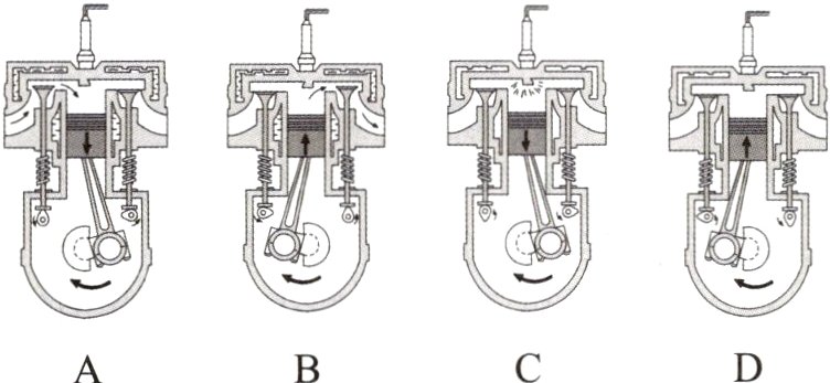 3. 下面是四冲程汽油机工作时的示意图,其中与摩擦生热过程中涉及的能量转化相同的冲程是( )
