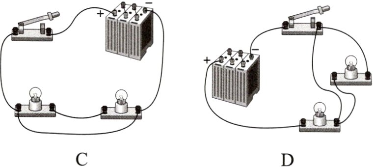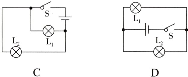 11.下面所示电路中,开关闭合后,两灯泡并联的是( )