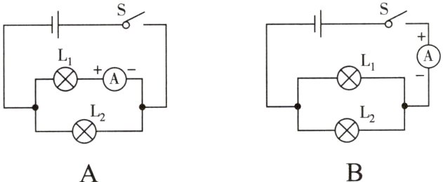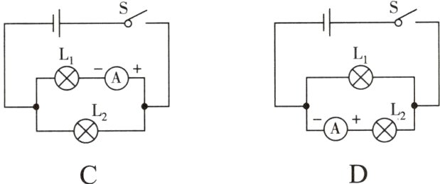 4. 下列电路图中,能正确测量通过L₁电流的电路是( )