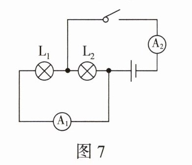 7. (2024·承德期末)如图7所示,闭合开关后,已知电流表A₁的示数为0.2A,电流表A₂的示数为0.5A,则下列分析正确的是( )