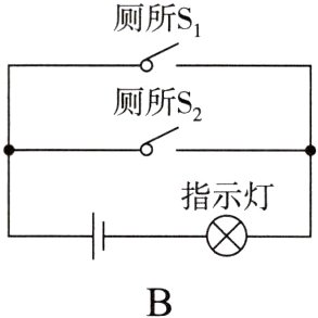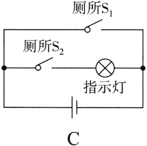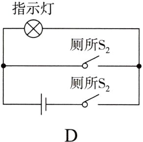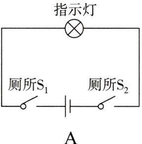 5. 高铁内的洗手间如果两个相邻的洗手间都有人并且锁住时,红灯亮表示“有人”。如果两洗手间都没有人或者只有一个有人时,灯不亮表示可以使用。下列电路图能实现上述功能的是( )