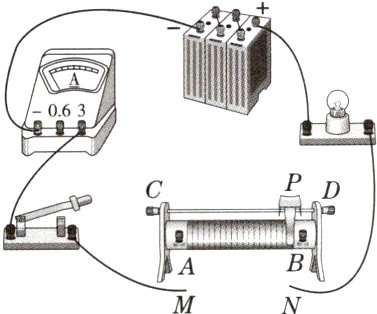 10. 如图16 - 4 - 8所示,滑动变阻器的接线柱D已连入电路中,要求当该滑动变阻器的滑片P向D端滑动时,接入电路中的电阻变大,则滑动变阻器连入电路的另一接线柱应是( )