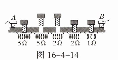 16. 如图16 - 4 - 14所示的是插入式电阻箱的结构示意图。它的最大电阻值是________Ω,图中A、B两个接线柱之间的电阻值是________Ω。