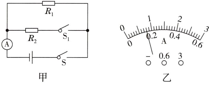 4. 在如图17 - 2 - 12甲所示的电路中,电源电压为6V且保持不变,电阻R₁的阻值为30Ω。同时闭合开关S和S₁,电流表的读数如图乙所示,求: