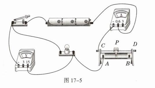 (4)排除故障后,先后让滑动变阻器的滑片P在不同位置上做了三次实验,前两组数据如表格中所示,最后一组数据如图17 - 3 - 6所示,电流表示数为________A,电压表示数为__________V,此时小灯泡电阻为__________Ω。