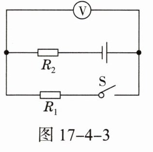 9. 如图17 - 4 - 3所示电路中,电源电压为3V,当开关闭合时,电压表的示数为2V,则( )
