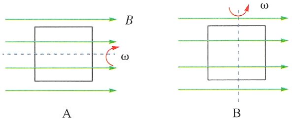 1. 在下列四幅图中,哪些情况下线圈中产生了正弦交流电( )