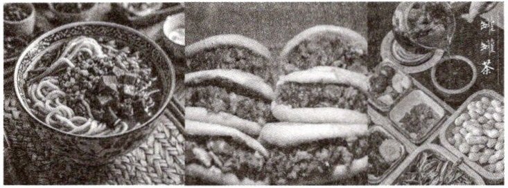 陕西的美食数不胜数,有“山”北边的肉夹馍、臊子面,还有“山”南边的面皮(大米制作)、罐罐茶。下面为陕西名吃图。据此完成7~9题。