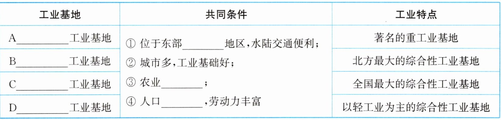 1. 分布特点:我国工业表现出______、______、______分布的特点。