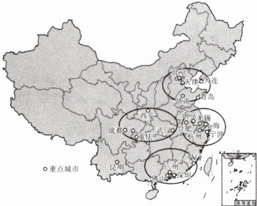 物联网是互联网、传统电信网等信息承载体,让所有能行使独立功能的普通物体实现互联互通的网络。结合我国物联网重点企业空间分布示意图,完成1~2题。