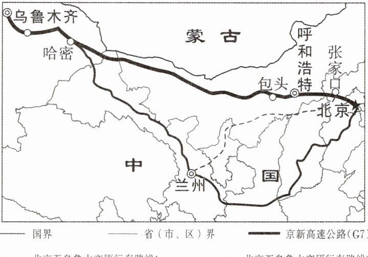 13. 与北京—乌鲁木齐原有公路相比,G7高速的特点和建设意义是 ( )