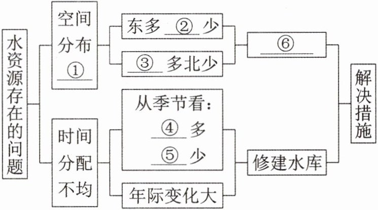 (2)利用框图归纳我国水资源存在的问题及解决措施。